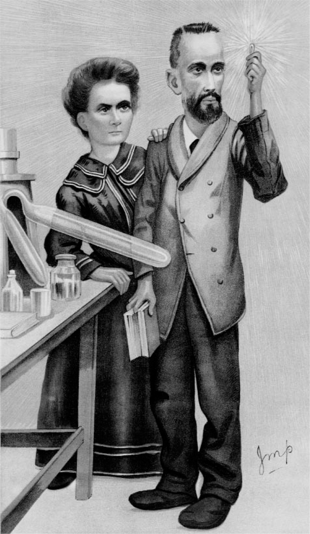 Marie and Pierre (1859–1906) Curie, caricatured in a lithograph titled “Radium,” in Vanity Fair, 22 December 1904.