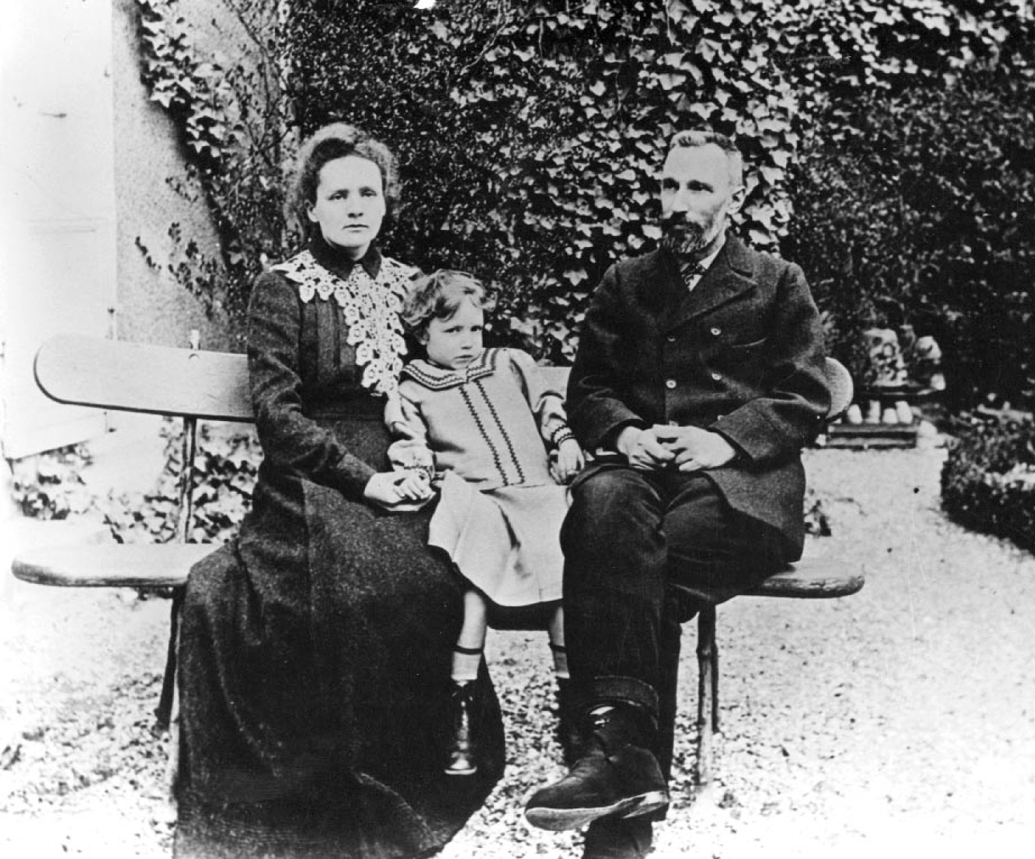 The Curies with their daughter Irène (1897–1956) in 1904.