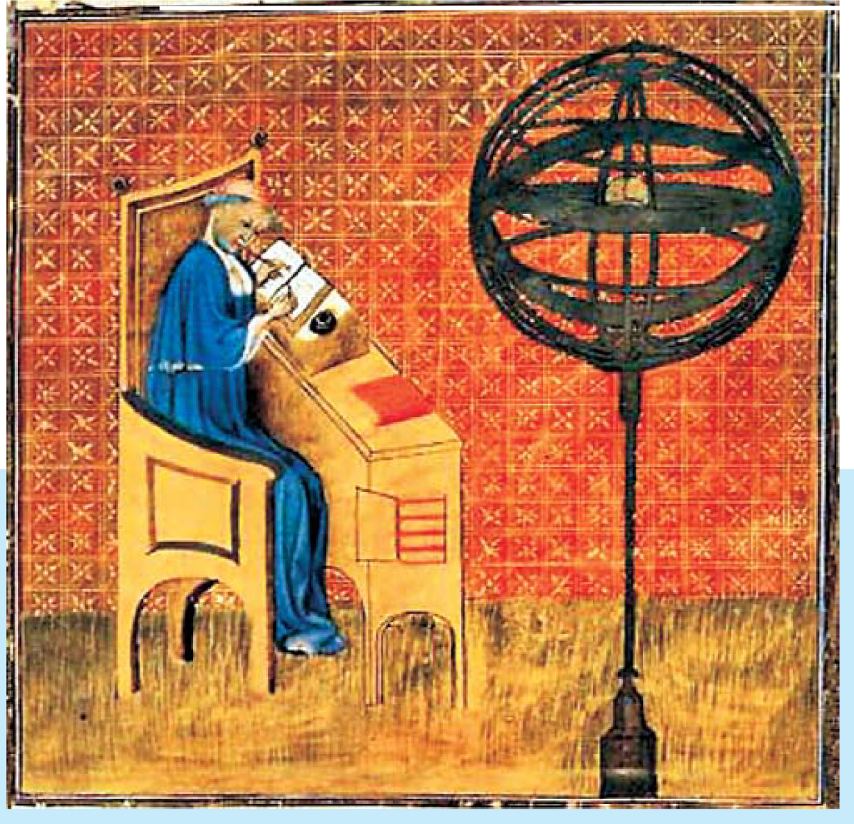 Figure 1. Nicole Oresme (1323–82) received his master of theology degree from the University of Paris in 1355. He is perhaps the most brilliant of the many European scholars who were influenced by Thomas Bradwardine’s De proportionibus velocitatum in motibus. The original portrait is in the Bibliothèque Nationale, Paris.