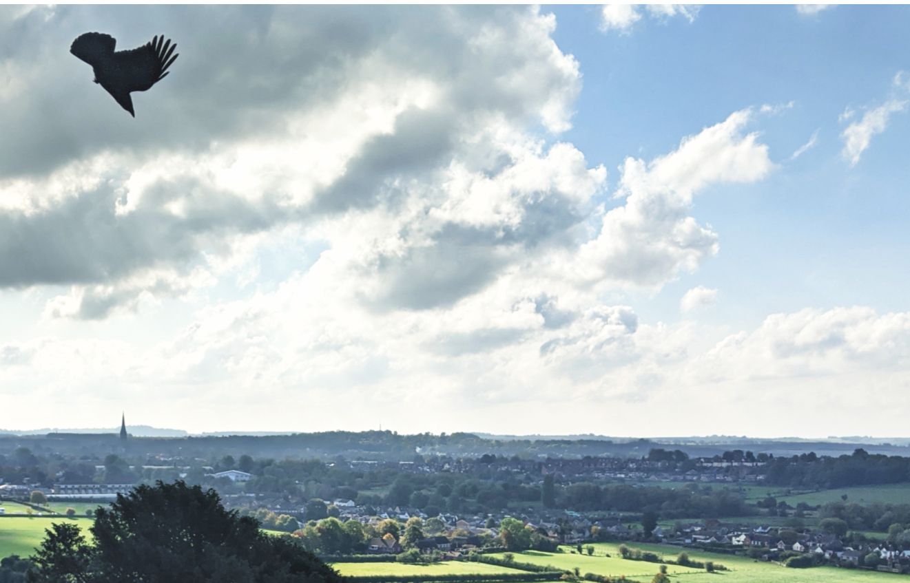Observations of clouds, sunbeams, and birds—like those seen in this photo taken in Salisbury, UK—were important elements of classical weather forecasting. (Image courtesy of Peter Lawrence.)