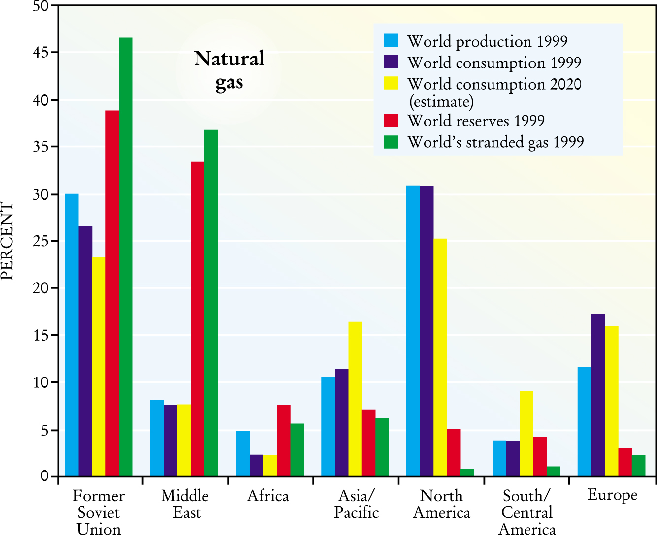 We noted earlier that geopolitical issues related to energy security are likely to emerge in connection with natural gas supply. Global demand for natural gas is growing as unevenly as it is dramatically, and the most significant increases are in those regions of the world with the fewest indigenous resources. Natural gas markets are limited by the inflexibility and expense of gas (versus liquid) transportation. Over half of the world’s natural gas reserves are very far from users and it is currently not profitable to transport such “stranded” gas from these reserves to customers.