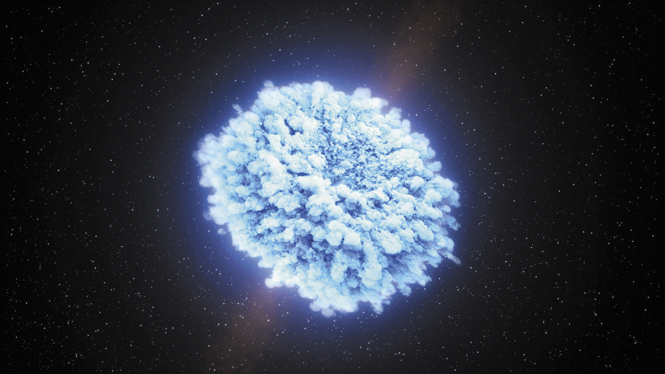 The explosive merging of two neutron stars. (NASA’S Goddard Space Flight Center/CI Lab.)