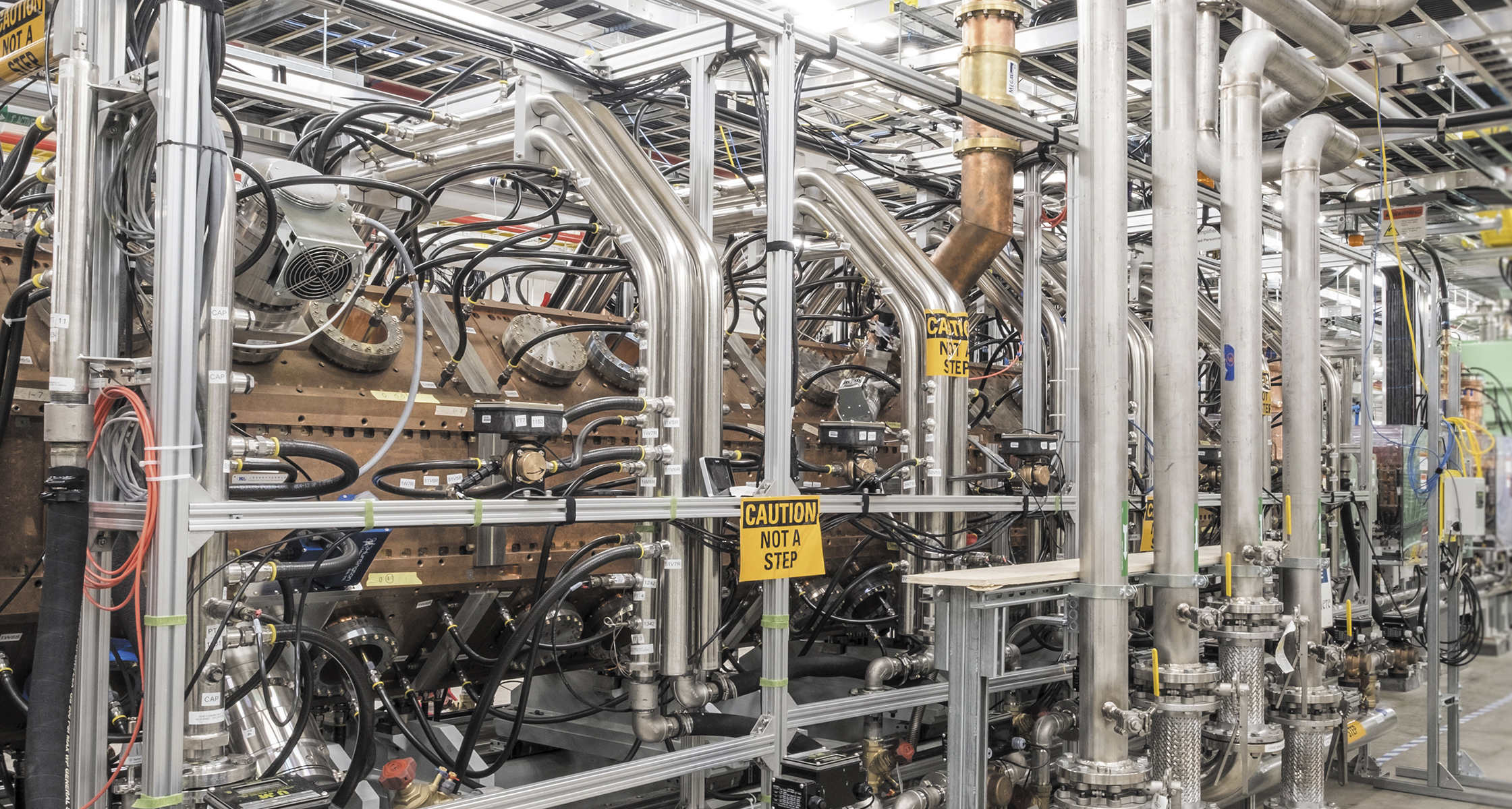 Two of the main science drivers of FRIB are the study of the heaviest elements and the production of exotic nuclei with thick neutron skins. In particular, FRIB will use strongly interacting probes to measure the neutron-skin thickness of short-lived isotopes. To ensure the success of such a challenging program, the upcoming electroweak measurements at Jefferson Lab will be instrumental in supplying critical calibrating anchors. The third image shows the progress on FRIB’s high-power superconducting linear accelerator, which will propel heavy ions and produce rare isotopes by in-beam fragmentation. (Photo courtesy of Michigan State University.)