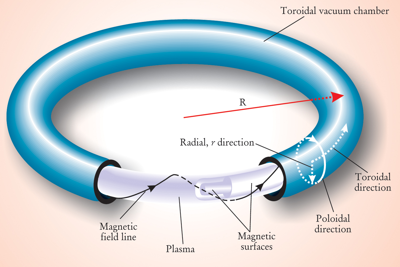 A confined magnetic field is useful because one can load it with charged particles. For a straight field line, each particle’s cyclotron motion (or gyration) keeps it within a Larmor radius (or gyroradius) of the line, and therefore close to a magnetic surface. As designers of particle accelerators well know, however, the motion of charged particles along curved, toroidal field lines is a little more complicated than that. Rather than gyrating strictly around a single field line, the particle’s guiding center (the center of its nearly circular orbit) can drift radially—for example, due to field curvature or field strength gradients. But it is not hard to construct field geometries for which even the guiding center’s motion is bounded and harmless. Charged particles moving under the influence of such a static, integrable magnetic field are confined.