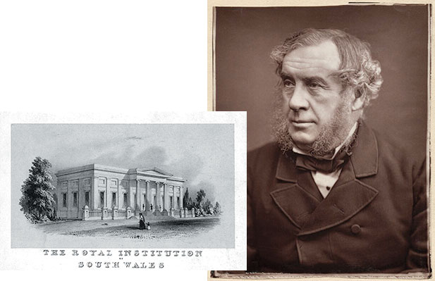 William Robert Grove, 1811–96 (right) was a major figure in the early history of the Royal Institution of South Wales (left). (Photograph by Lock & Whitfield; copyright National Portrait Gallery, London, NPG x16928. Drawing courtesy of the National Library of Wales.)