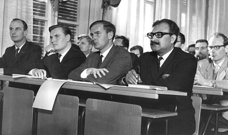 Figure 1. Abdus Salam was crucial to the creation of the Pakistan Institute of Nuclear Science and Technology (PINSTECH). Here, he is the right-most figure in the front row, attending a seminar at the International Centre for Theoretical Physics (ICTP), which he founded. The photo was taken in 1965, the year the PINSTECH reactor went critical. (Courtesy of the ICTP.)