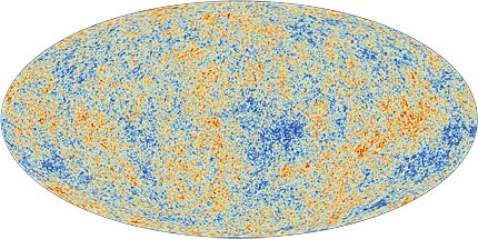 Figure 4. The temperature fluctuations in the cosmic microwave background are only a few parts per million of the 3-K mean value. The data yielding this image of the entire sky were obtained with instruments aboard the Planck satellite. A single pixel on this map covers more of the sky than the Hubble Ultra Deep Field shown in figure 3. (Courtesy of the Planck collaboration.)