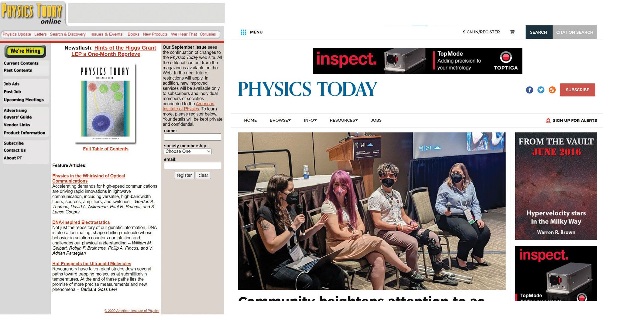 The Physics Today website, in September 2000 and in April 2023.