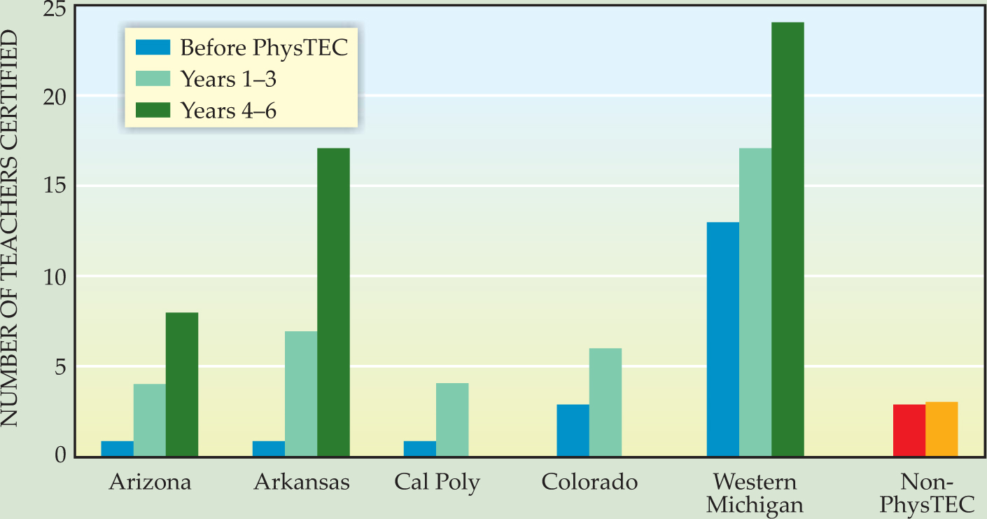 Education is a time-intensive activity, and we are grateful to all who work to educate physics teachers and to all who have helped make PhysTEC a success. In particular, we thank Monica Plisch and Gabe Popkin for their work on the PhysTEC project and their comments on the manuscript. This article is dedicated to the late Fred Stein, who provided much of the original vision for PhysTEC.