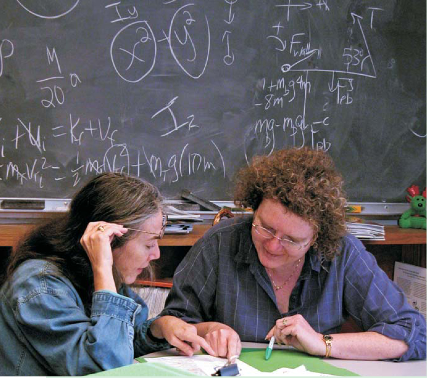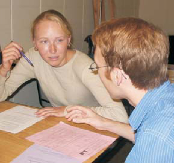 The University of Arkansas excels at recruiting and advising physics teachers. The evidence is clear—in the 10 years prior to 2001, when the Physics Teacher Education Coalition project began at Arkansas, only one physics teacher graduated from the university. In the past three years, 20 teachers have graduated, and there is no sign of that number diminishing. At the heart of the Arkansas program is physics professor Gay Stewart, pictured at right in the photograph with one of her students. She used research-tested materials in redesigning the introductory physics sequence to emphasize interactive engagement, initiated a learning assistants program similar to those described in the main text and in box 2, paid individualized attention to students through advising, and helped build in the department a supportive social atmosphere that continues today. Stewart sums up her approach to teacher recruitment this way: