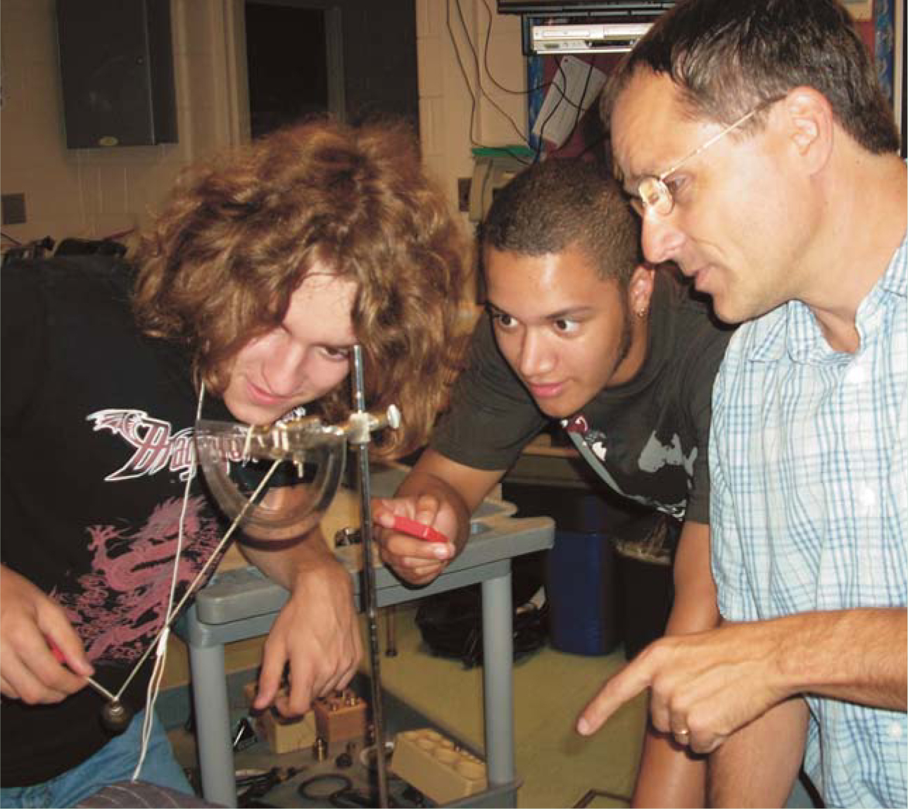 Isola, shown at right teaching at his high school, brought to the university insights from the classroom; an understanding of learning styles, informed by a PhD in physics education; and a desire to broaden his own career. Like many other TIRs, Isola organized recruiting efforts and worked with university faculty and teaching assistants to help them develop techniques to engage introductory-physics students in both the lecture and laboratory portions of their courses. He also worked with WMU’s education faculty to infuse science-methods courses with examples from physics.