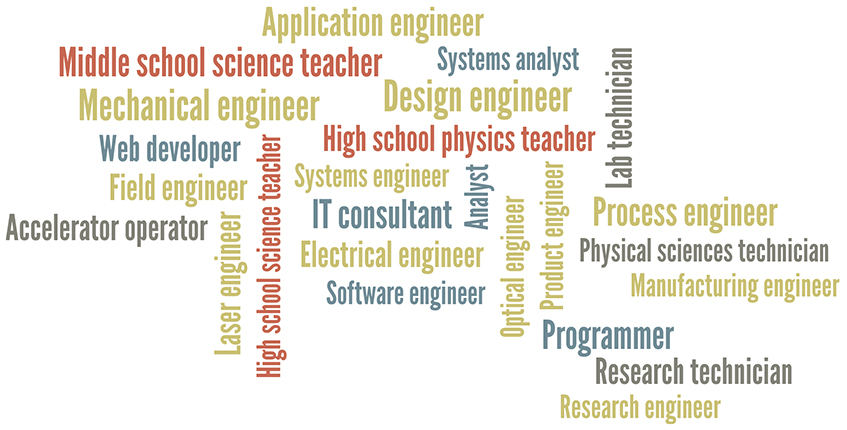 Faculty members can serve their students well by providing opportunities to acquire scientific and technical skills not necessarily specific to physics—for example, problem solving beyond the typical problem sets needed to master basic concepts; generic experimental skills in optics, vacuum technology, and electronics; coding and software use; data processing, acquisition, and analysis; and troubleshooting, calibrating, and repairing equipment. Some aspects of those skills are components of traditional coursework and advanced laboratories. However, without an explicit goal of inculcating such skills and developing specific activities to achieve it, some students may fall through the cracks. Perhaps equally problematic, they may fail to recognize the marketable skills they actually have acquired and which employment opportunities suit them best. Interestingly, in the list of common job titles given in figure 3, only one—high school physics teacher—includes the word physics.
