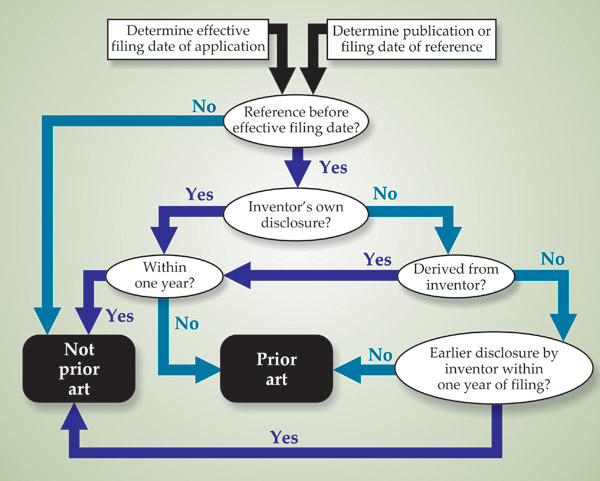Figure 2. The Leahy–Smith Act implements a “first-inventor-to-file” patent system, which is a modified form of a “first-to-file” system. Disclosures made within a grace period of one year prior to filing a patent application are considered in determining who is entitled to the patent. To be granted a patent on an invention, an inventor must file an application with the US Patent and Trademark Office and must be either the first to have so filed or the first to have disclosed the invention during the grace period. Whether a reference is “prior art” defines whether it may be used in evaluating an invention’s novelty and nonobviousness.