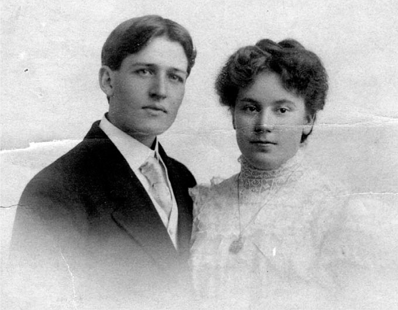 Harvey Fletcher (1884–1981), with his wife, Lorena Chipman, shortly after their wedding in September 1908.