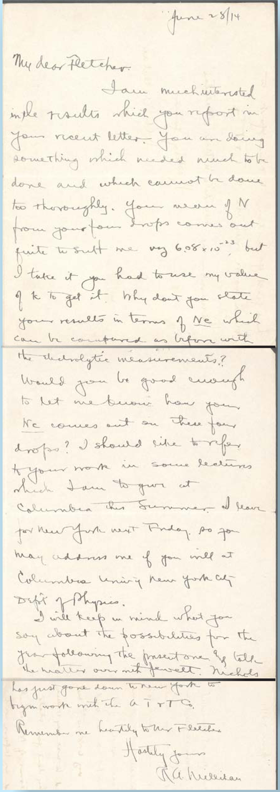 14. R. Millikan to H. Fletcher, 18 May 1914, Fletcher Papers.