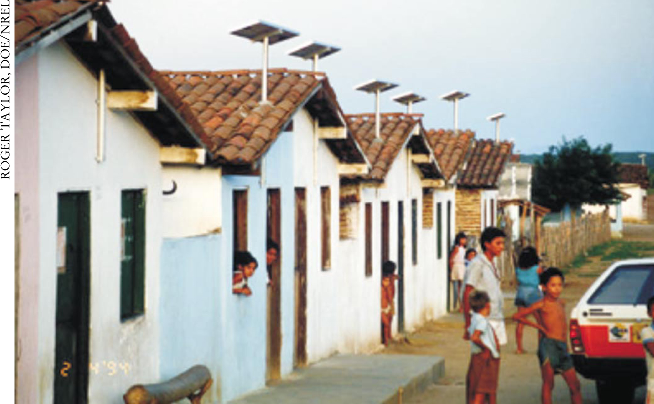 In the Village of Cacimbas in Brazil’s Ceara state, 50-watt photovoltaic systems provide homes with electricity for fluorescent lighting. With support from the US Department of Energy, the Brazilian energy ministry is installing such systems in several states in the Amazon region and the country’s northeast.