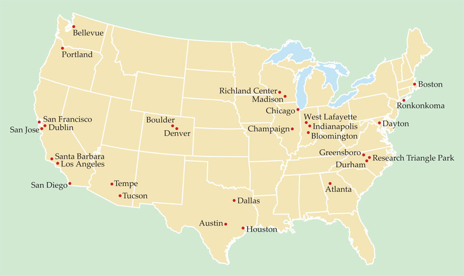 Many states, cities, and universities throughout the US are making concerted efforts to foster economic growth by supporting technology entrepreneurship and startups so as to create high-tech clusters. For example, at least 27 states provide funding, ranging from $1000 to around $7500, to help startups apply for SBIR or STTR grants. Some of the states also provide matching funds for successful SBIR or STTR applicants located in the state or willing to move there, and others have created venture funds and various mechanisms to promote new startups. However, there is no sure-fire funding model. Only two of the companies in our study had been successfully recruited to a new state, but sometimes financial inducements had influenced the location within a state. Applied Optoelectronics’s Stefan Murry told us that his company looked at several areas in the vicinity of Houston, Texas, and picked Sugar Land because it was growing fast and “had an aggressive package of financial incentives” for locating there.