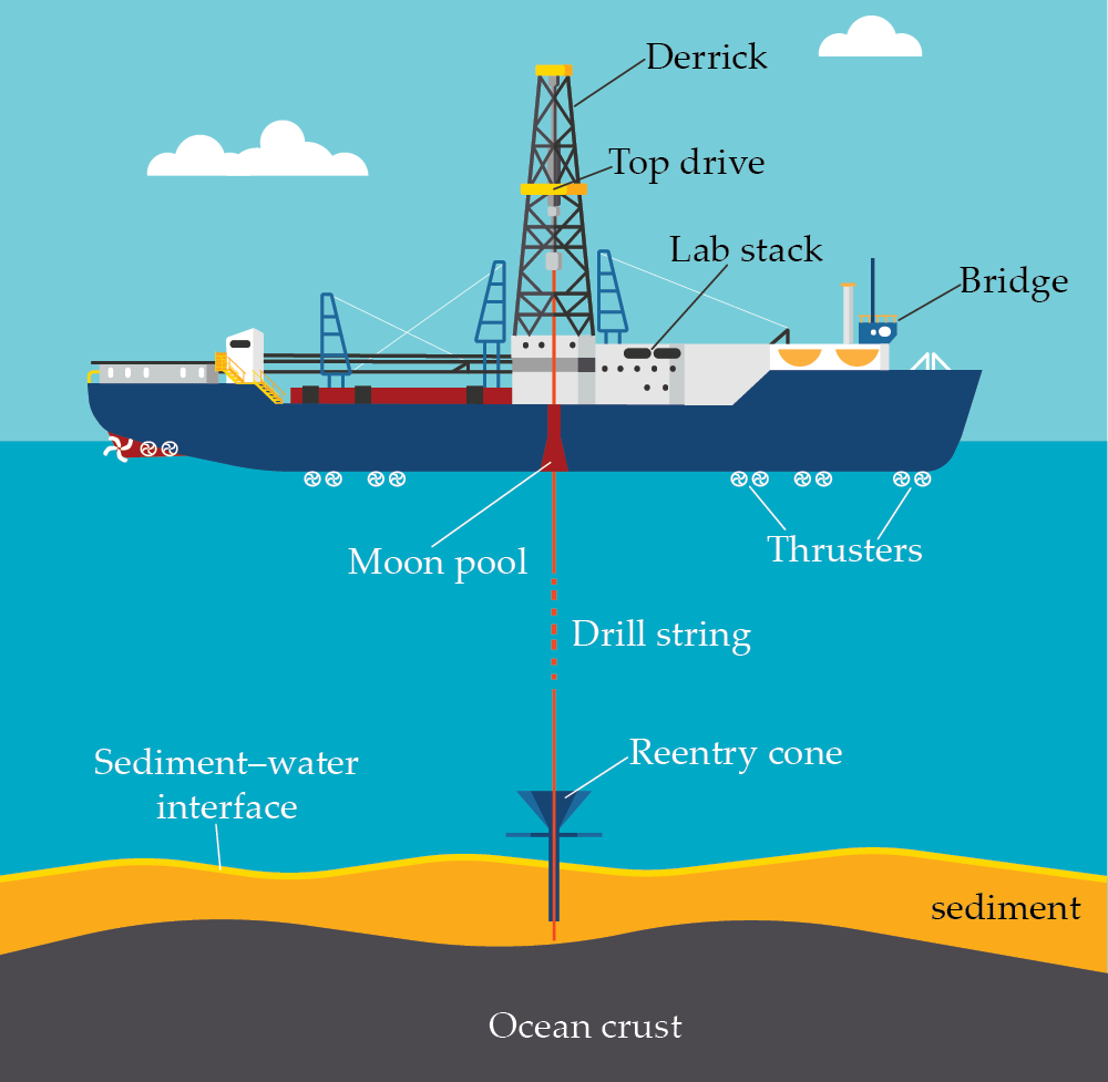 JOIDES Resolution schematic. The US scientific ocean drilling vessel will be retired at the end of 2024, with no replacement in line. (Adapted from International Ocean Discovery Program/JOIDES Resolution Science Operator.)