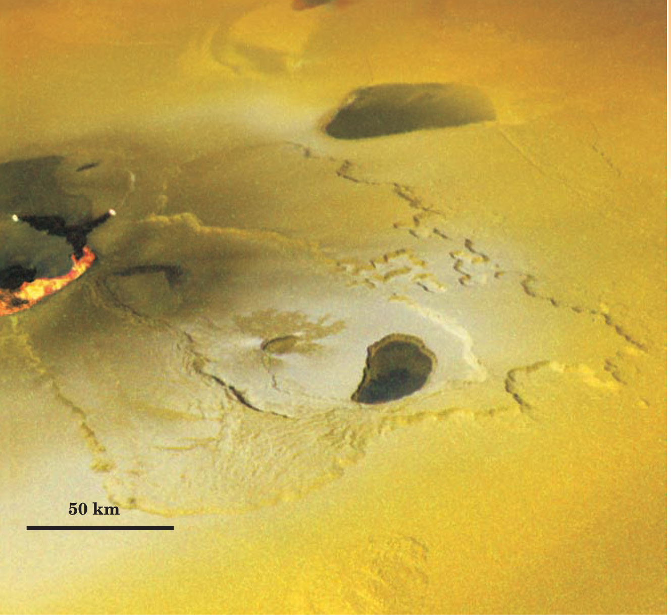 Moreover, temperature estimates from some eruption sites suggest that Io’s lava may be hotter than that seen on Earth today. Melt temperatures of rocks depend on composition. As Figure 4 illustrates, temperature estimates in some places top 1800 K, which suggests lava with a high magnesium content. 2 (The rocks that melt to yield such lava are called ultramafic.) On Earth, very high-temperature volcanism is recorded primarily in very old volcanic rocks—komatiites—that date back some 2.5 billion years. Thus, tidally heated, volcanic Io may be a window to Earth’s hot, volcanic past.