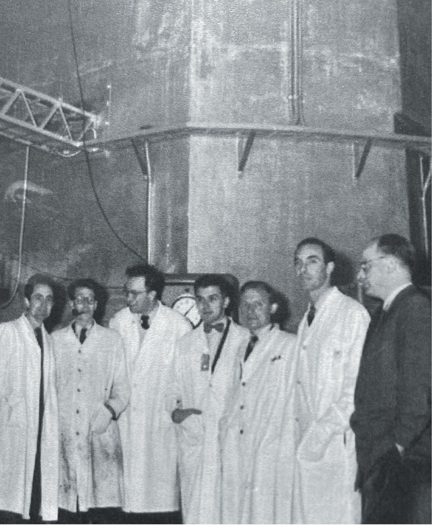 Scientists working at the Dutch–Norwegian nuclear reactor, the Joint Establishment Experimental Pile, sometime in the 1950s. (Photo from NTB/Alamy Stock Photo.)