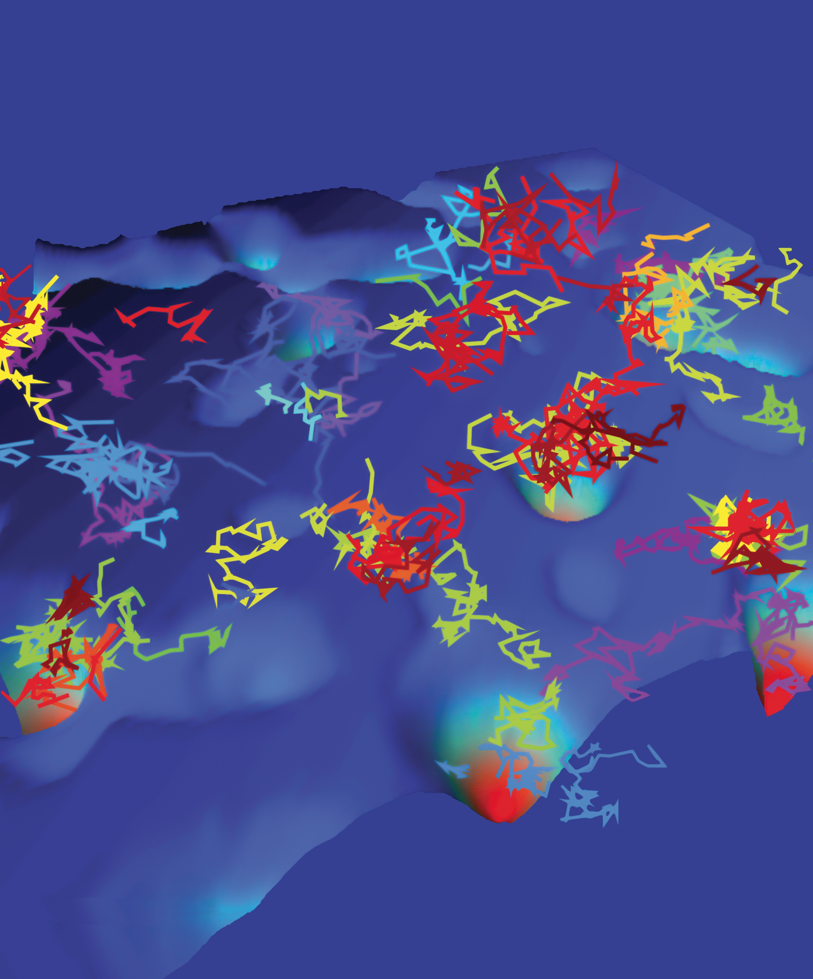 Trajectories of sodium channels moving on an energy landscape within the surface of hippocampal neurons. (Based on data from E. J. Akin et al., Biophys. J. 111, 1235, 2016, doi:10.1016/j.bpj.2016.08.016