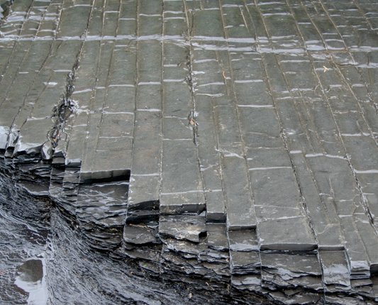 Fractures in siltstone and black shale in the Utica shale, near Fort Plain, New York. (Photograph by Michael C. Rygel.)
