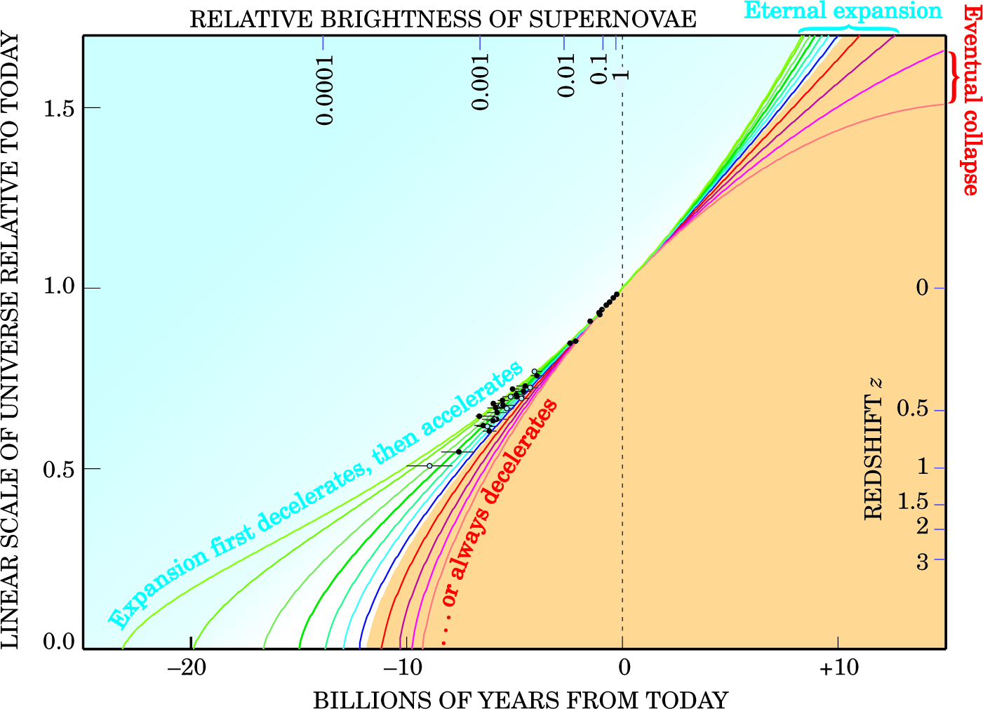 The recorded redshift and brightness of each such object thus provide a measurement of the total integrated expansion of the universe since the time the light was emitted. A collection of such measurements, over a sufficient range of distances, would yield an entire historical record of the universe’s expansion.