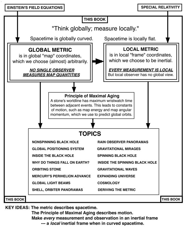 Figure 3. The scope, core principles, and topics covered in Edwin Taylor and John Wheeler’s calculus-only text, Exploring Black Holes. This summary is the anticipated back cover of the forthcoming second edition. (Courtesy of Edwin Taylor.)