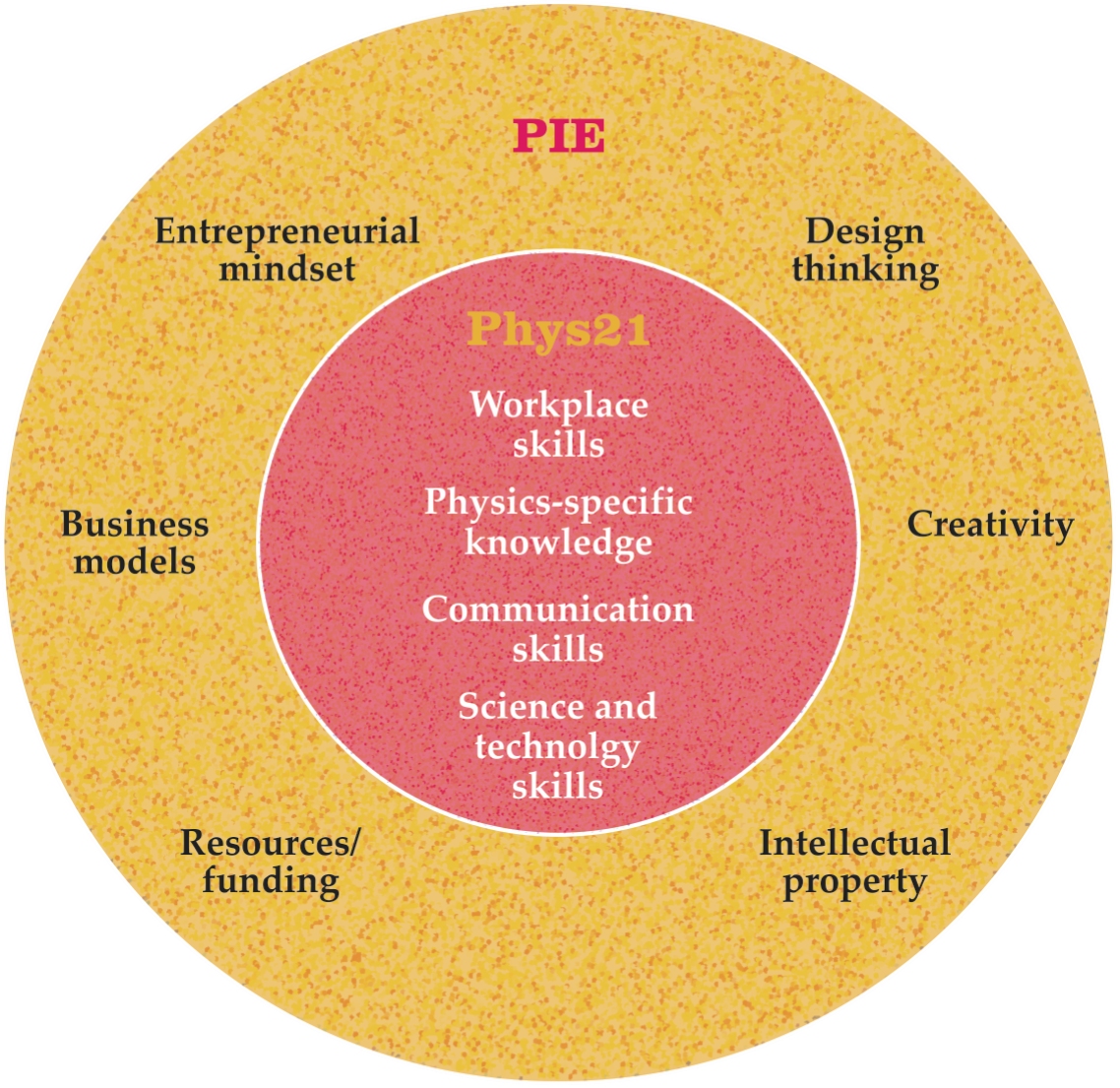 PIE consists of experiences, courses, and research opportunities that convey leadership, communication, and other professional skills; that develop deep technological expertise and the confidence to translate it into innovative solutions to problems; and that create familiarity with intellectual property, return on investment, and other workforce-relevant concepts—all in the context of an undergraduate physics degree. PIE encompasses many of the skills and knowledge that will be relevant to future careers, but it also includes the mindset and knowledge that will enable physics students to recognize opportunities to address human needs and to translate their ideas into scalable solutions.