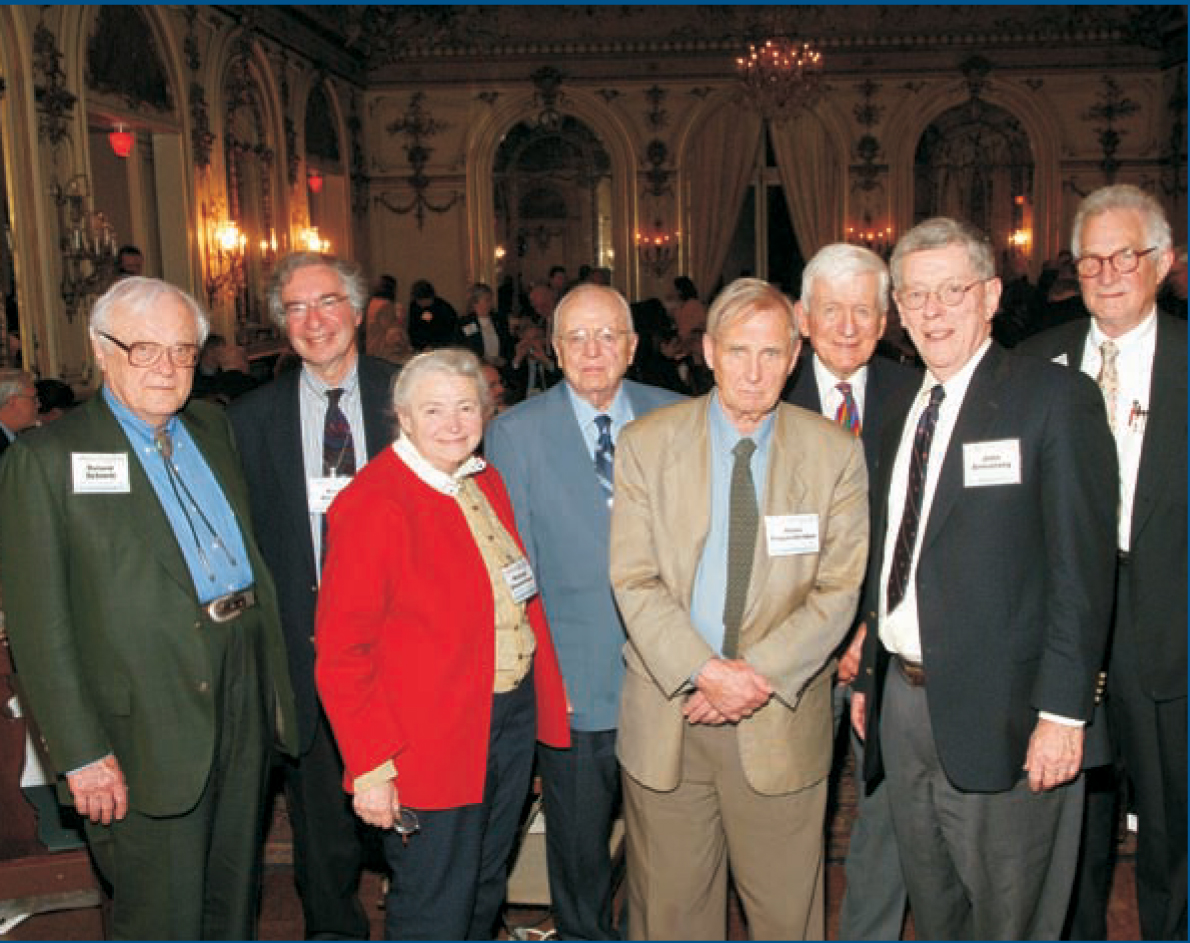 AIP executive directors and Governing Board chairs. (L–R) Roland Schmitt (GBC, 1993–98), Marc Brodsky (ED, 1993–present), Mildred Dresselhaus (GBC, 2003–present), H. William Koch (ED, 1966–87), Hans Frauenfelder (GBC, 1986–93), Norman Ramsey (GBC, 1980–86), John Armstrong (GBC, 1998–2003), Kenneth Ford (ED, 1987–93).