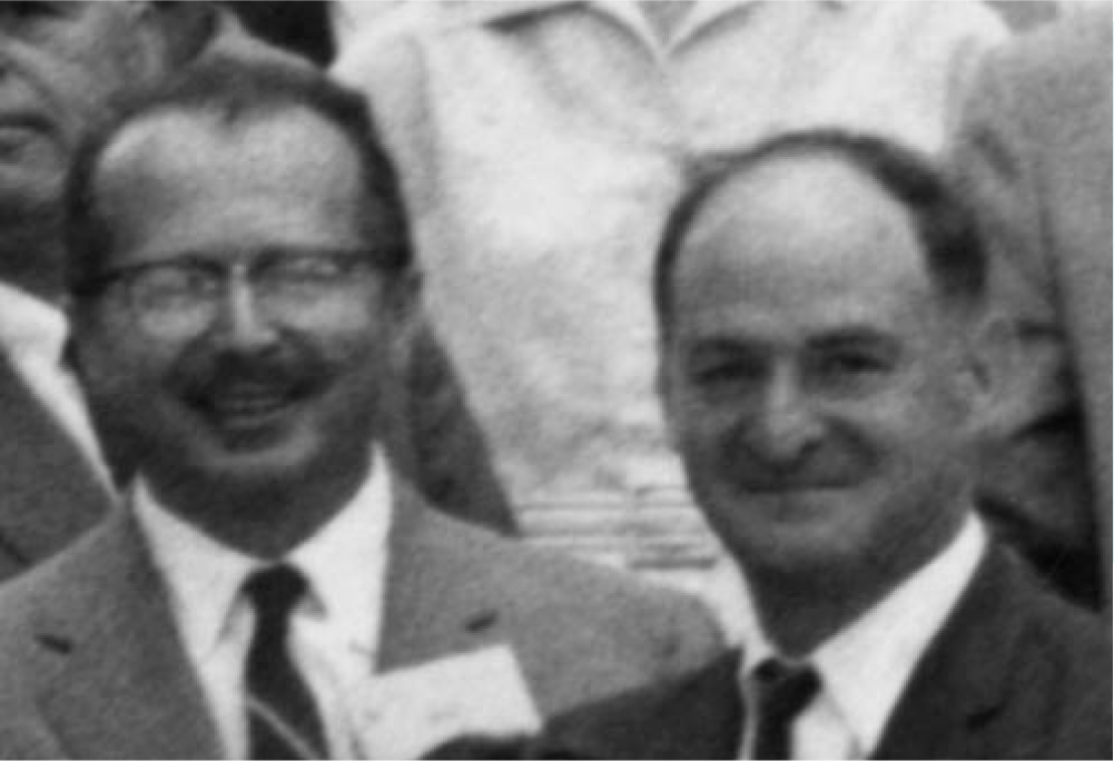 Figure 1. Former Harvard University classmates soon to turn rivals Jesse Greenstein (left) and Leo Goldberg at the June 1956 meeting of the American Astronomical Society in Berkeley, California.