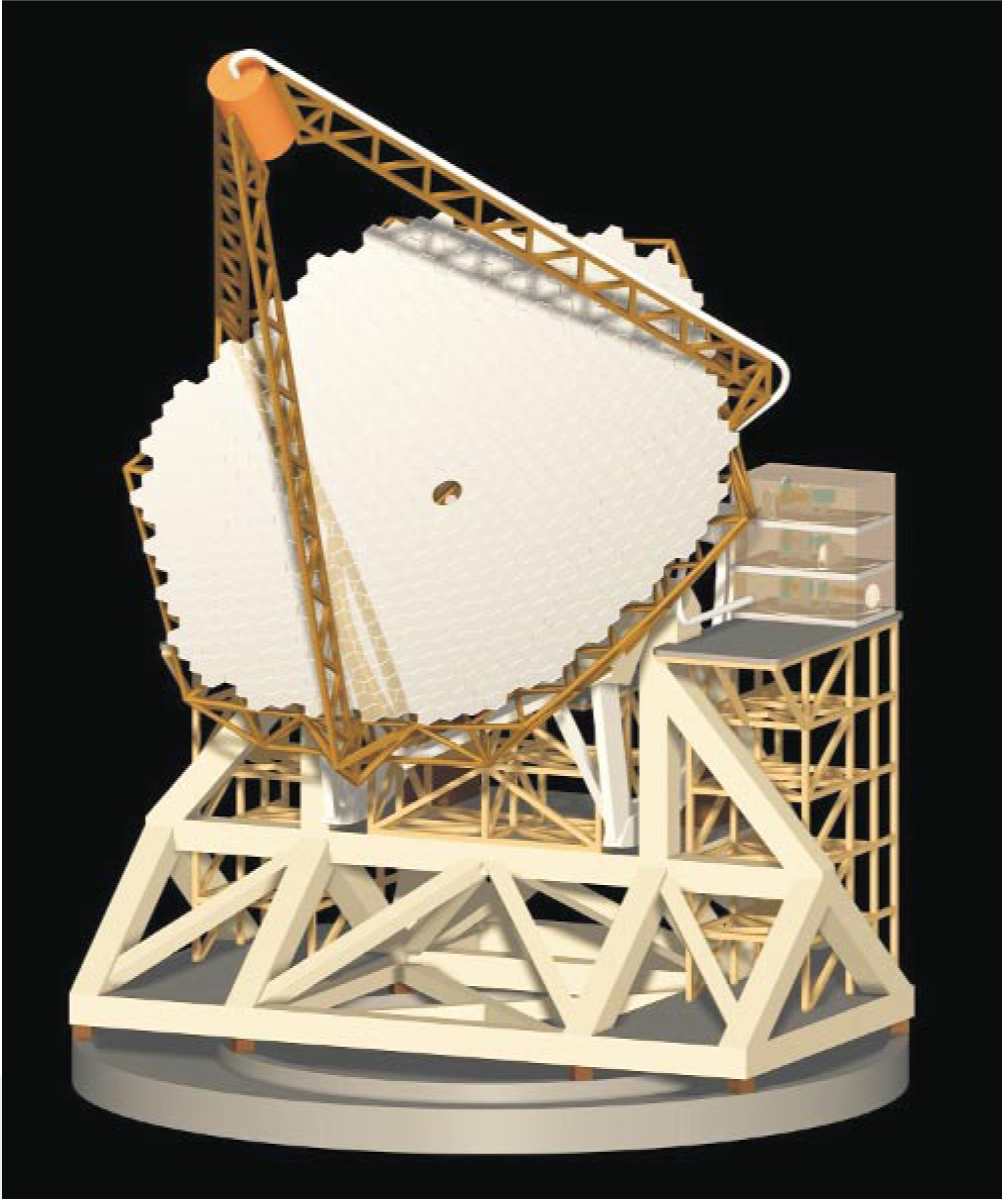 Figure 6. Giant Segmented Mirror Telescope proposed by the National Optical Astronomy Observatory. NOAO’s 30-m-telescope project complements a similar effort administered by Caltech and the University of California. A new agreement among the three institutions may usher in a period of public and private cooperation.