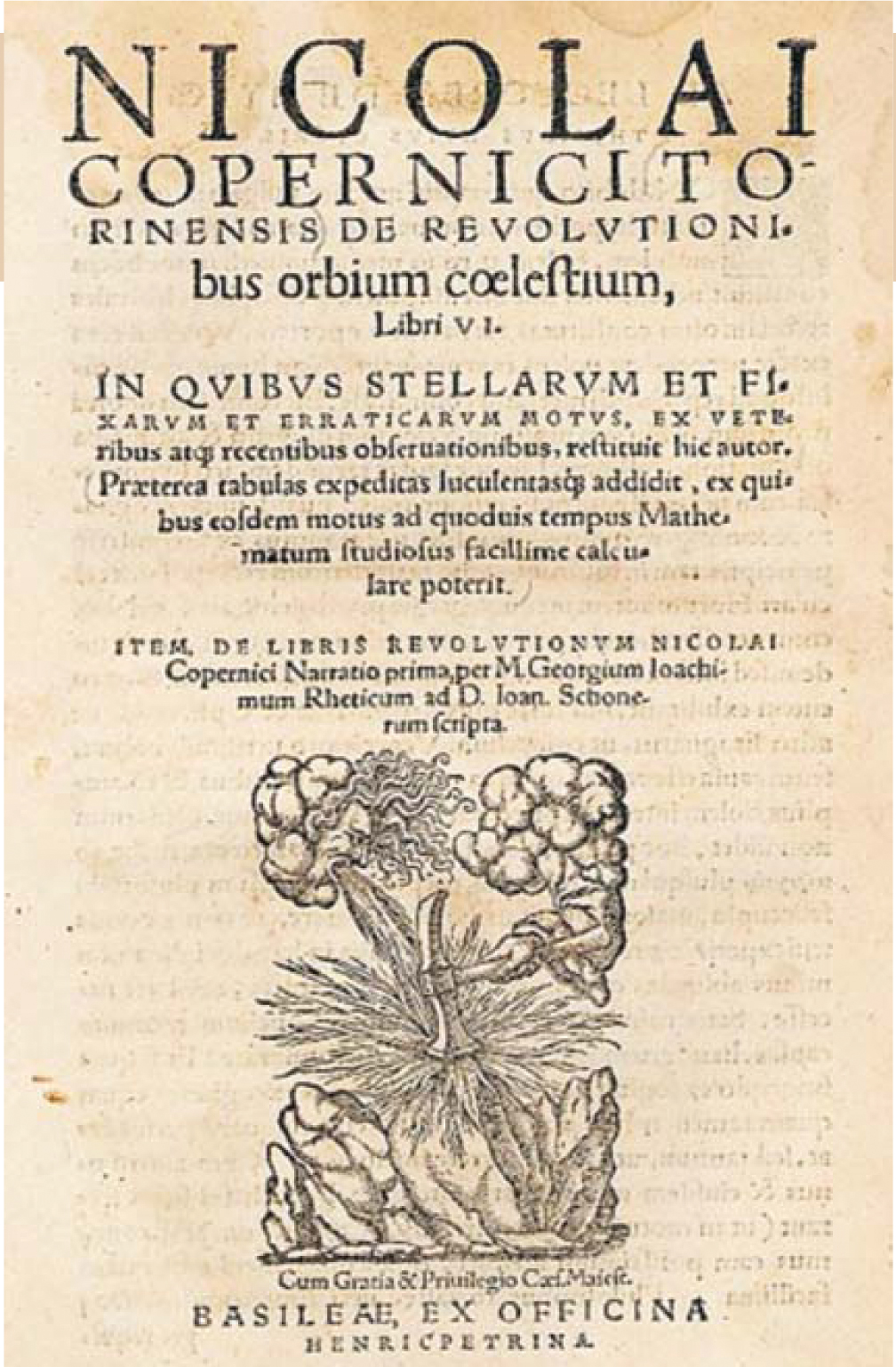 Frontispiece of a 1566 edition of Copernicus’s De Revolutionibus Orbium Coelestium, published in Basil, Switzerland. The work was first published a few months before the author’s death in 1543.