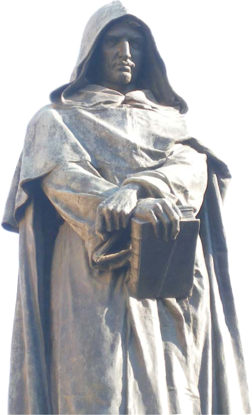 Giordano Bruno, burned at the stake as a heretic in 1600, was honored in 1887 with the erection of this statue at the site of his execution in Rome’s Campo dei Fiori. Although Bruno was condemned by the Inquisition primarily for theological heresies rather than for his advocacy of heliocentrism, he is widely regarded as the first martyr of the scientific revolution.