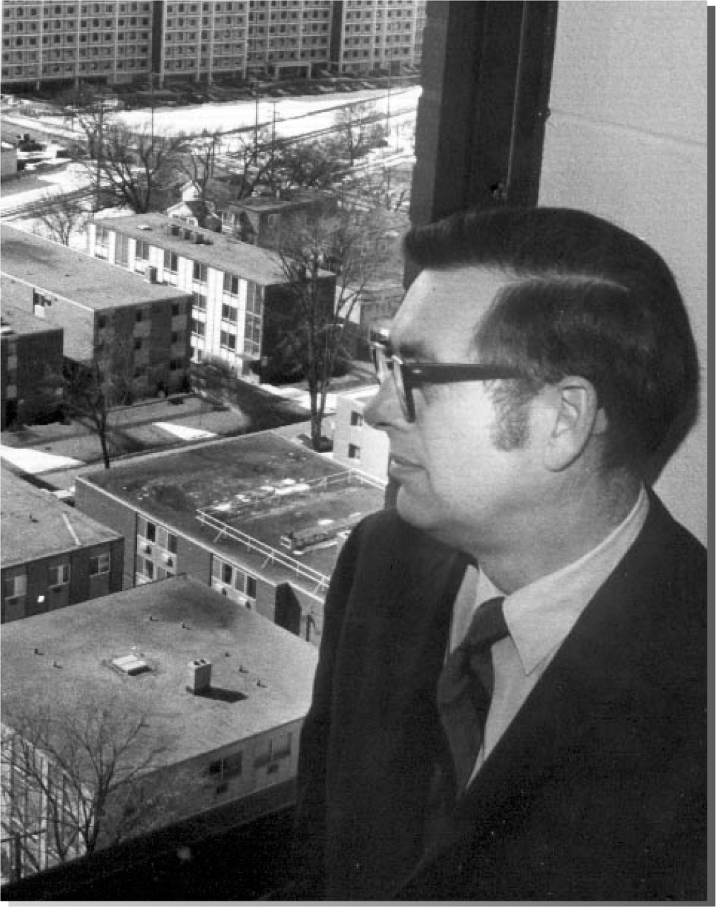 Figure 4. Reid Bryson at the University of Wisconsin. In the 1960s, he reported evidence of severe climate changes within the time span of a century, such as prolonged droughts that had devastated Native American cultures in the 1200s. And he drew public attention to the question in the early 1970s, when unusual droughts were afflicting several parts of the world. Bryson’s chief concern was that the rapid increase of aerosols—industrial smoke plus dust from eroding farms and grasslands—would bring drastic cooling. Although that never happened, many took to heart his key message: Grievous climate change could descend with little warning as an unintended consequence of human activities.
