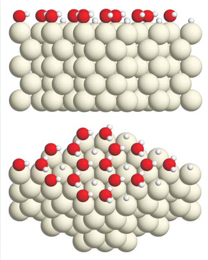 But for the occasional nugget, metals are not part of our daily experience of nature. More stable materials such as oxides, sulfides, and salts are. So why have most molecular-level studies of wetting referred to metals nonetheless—and at low temperatures in ultrahigh vacuum (UHV)? It’s not that metals conduct electrons or that applications like corrosion, fuel cells, and electrocatalysis are any more important than rainfall, erosion, or transport of toxic materials in soil. Rather, metals represent the simplest test bed for refining understanding.