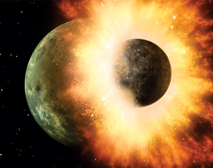 Figure 1. Artist’s impression of a collision between a growing Earth-like planet and a smaller planetary embryo. (Courtesy of NASA.)