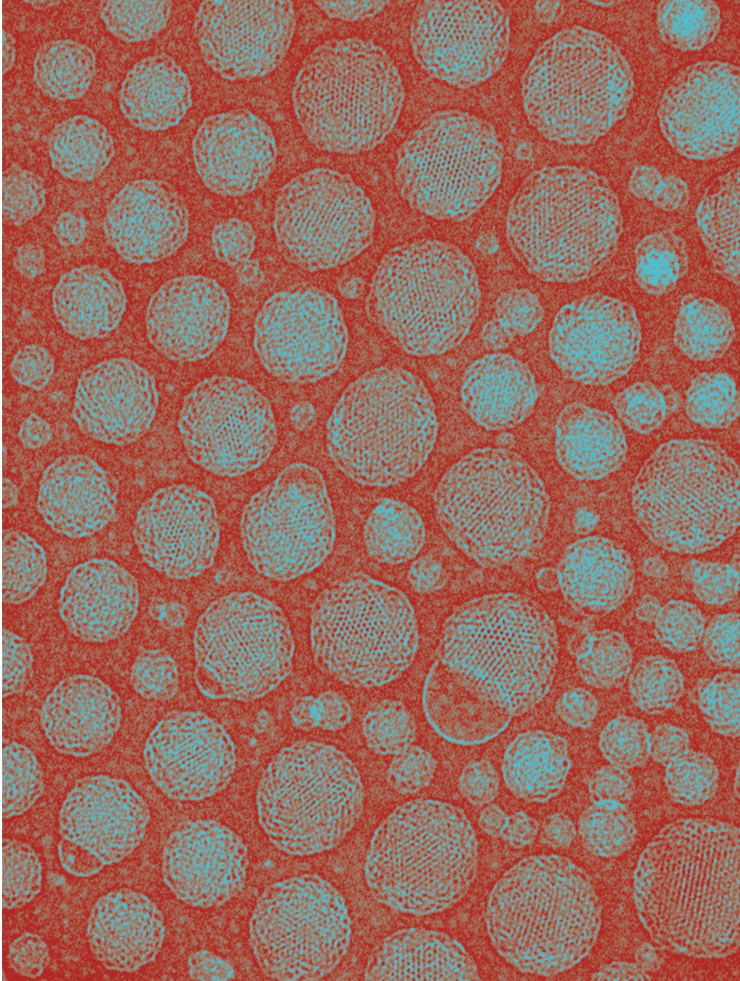 This cryogenic transmission electron microscopy image shows submicron cubosomes, formed from the cubic phase of the monolinolein lipid. (Laurent Sagalowicz, Nestlé Research Center.)