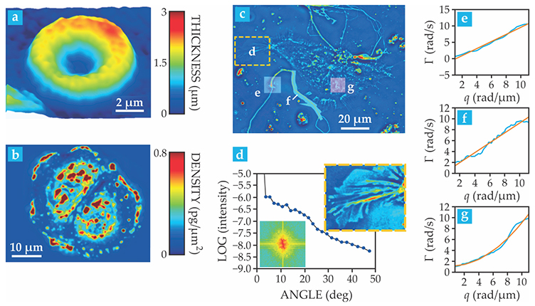 Figure 3. Phase to morphology—phase to mass. (a) The phase shift induced by a red blood cell, which lacks a nucleus, depends on the cell’s thickness. Quantitative phase imaging (QPI), therefore, probes cellular topography. (Adapted from G. Popescu et al., J. Biomed. Opt. 10, 060503, 2005, doi:10.1117/1.2149847