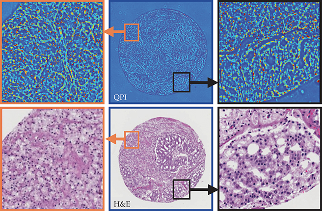 The QPI image of an unstained tissue slice displays the nanoarchitecture of the tissue. Subtle changes in morphology due to the onset of cancer can be easily observed. Figure