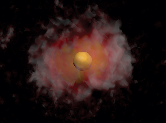 Figure 3. A ’t Hooft–Polyakov monopole surrounded by a quantum field cloud, simulated using lattice field theory.