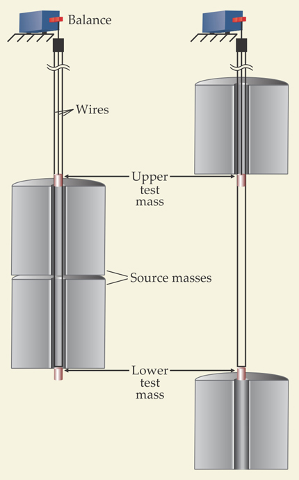 In an experiment at the Huazhong University of Science and Technology in Wuhan, China, Jun Luo and coworkers performed a time-of-swing measurement using a very long tungsten wire and a dumbbell-shaped mass assembly in which the spheres were set at different heights.