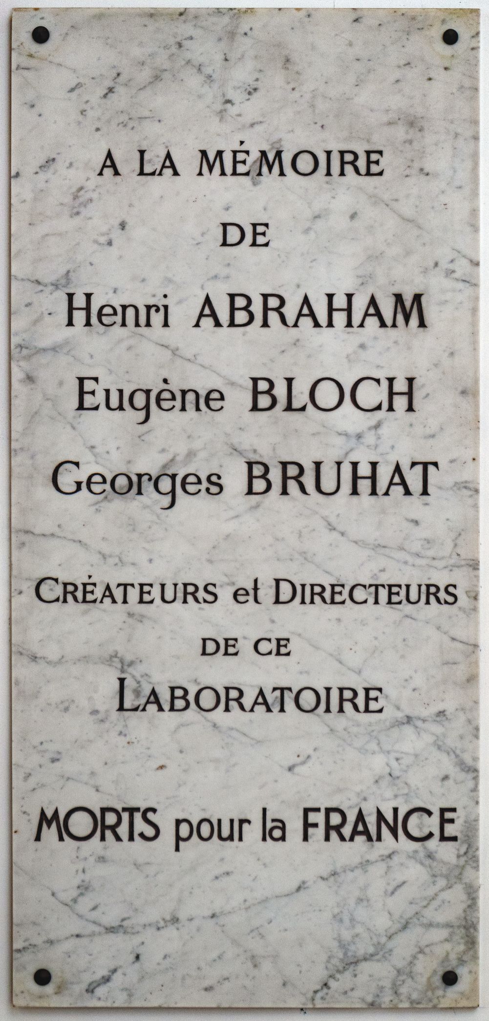 2. École Normale Supérieure, A la mémoire de Henri Abraham, Eugène Bloch, Georges Bruhat: Créateurs et directeurs du Laboratoire morts pour la France (1948).