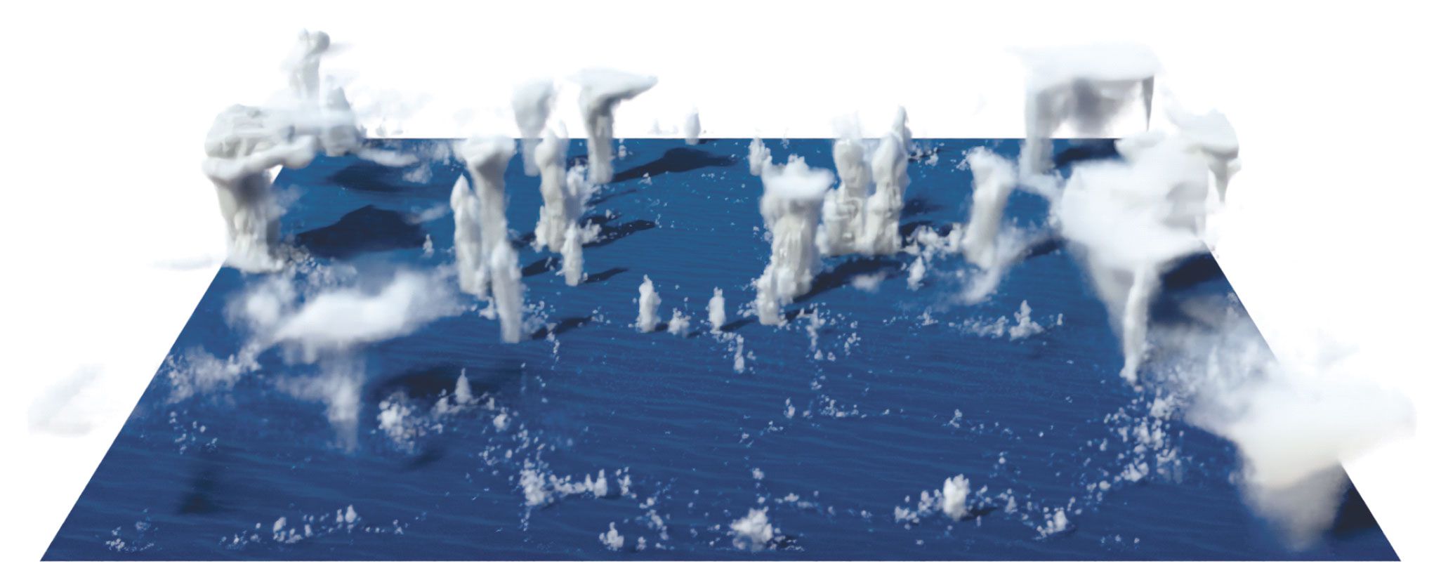 Numerical models are crucial for conducting climate research and estimating irreversible processes in the atmosphere and oceans. This image is a snapshot of clouds from an idealized high-resolution simulation made with the System for Atmospheric Modeling.