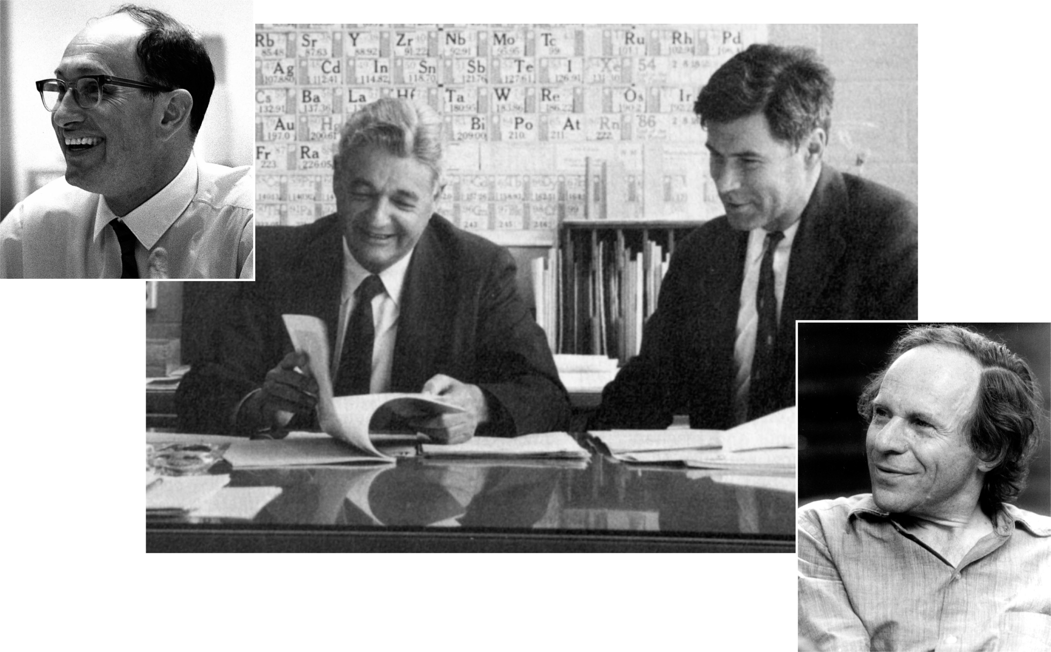 Figure 1. Four prominent physicists who helped start the current revolutions in science education. Jerrold Zacharias and Francis Friedman (center) at MIT, and Philip Morrison (lower right) at Cornell and then MIT, led the development of the extraordinarily influential high-school Physical Science Study Committee physics program in the late 1950s. They then developed the ground-breaking Elementary Science Study program for elementary schools in the early 1960s. Robert Karplus (upper left), a physicist at the University of California, Berkeley, developed the different but also influential Science Curriculum Improvement Study elementary science program at about the same time.