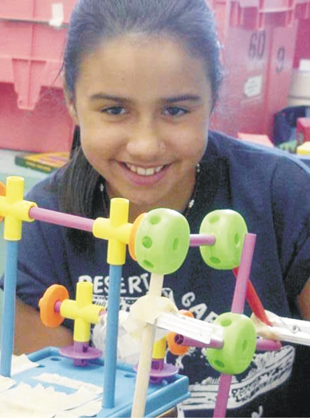 Figure 3. A clock escapement mechanism constructed with Tinkertoys® is the challenging activity that concludes the sixth-grade Measuring Time kit, part of the Science and Technology for Children series. With this kit, students spend six to eight weeks investigating water clocks, sundials (including the phases of the moon and some elements of planetary motion), and the dynamics of pendula.