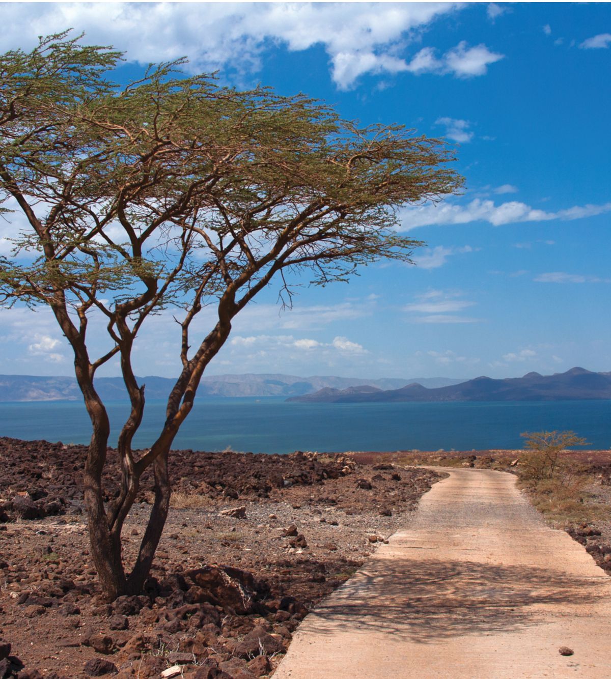 The deep, East African Lake Turkana experienced extreme wet and dry episodes during periods of high orbital forcing. Big swings in the precession of Earth’s orbit create significant variations of the area’s local insolation and rainfall intensity. Those variations lead to ephemeral deep freshwater lakes, like the one pictured here, in the East African Rift Valley. Scientists think that major developments in human evolution are linked to the short periods of highly variable environmental conditions. As the lakes dried out at the end of a precessional cycle, humans’ brain size may have increased in response to the environmental pressure. (Belikova Oksana/Shutterstock.com.)