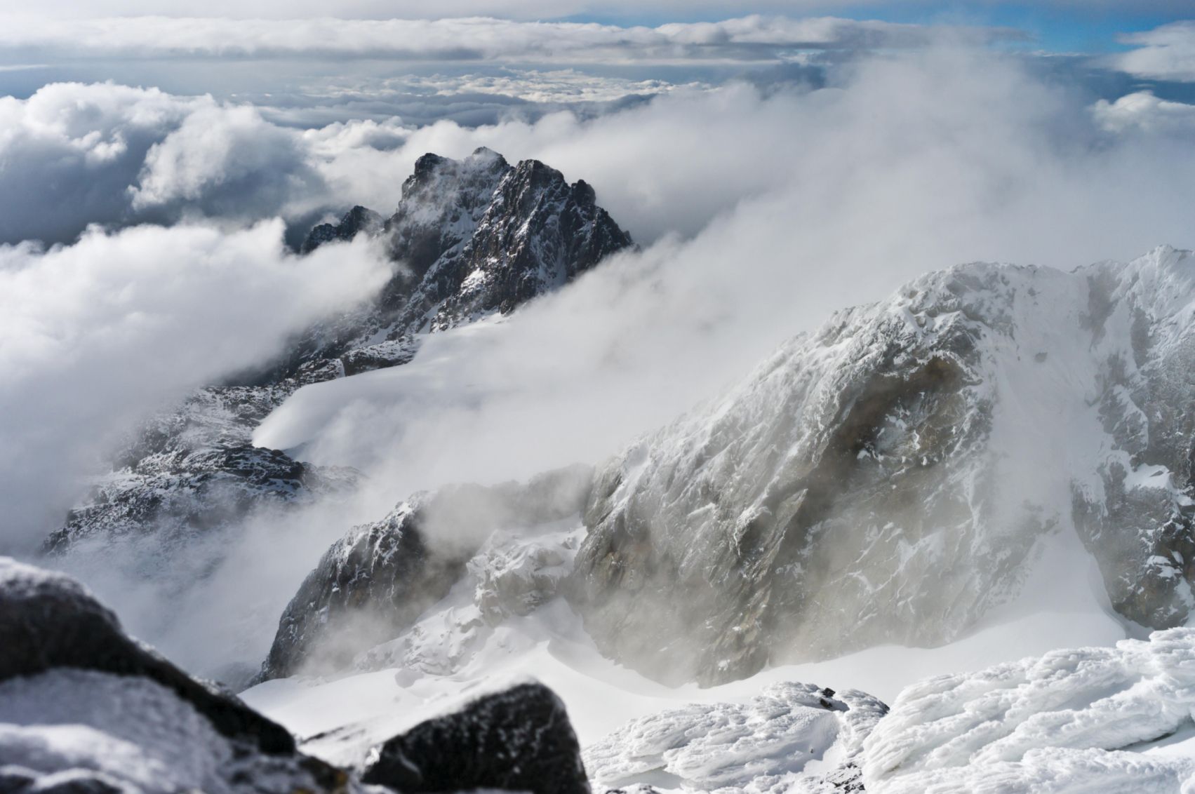 Uganda’s Margherita glacier, in the Rwenzori Mountains, provides the Nile River with some of its water. (Morgan Trimble/Alamy Stock Photo.)