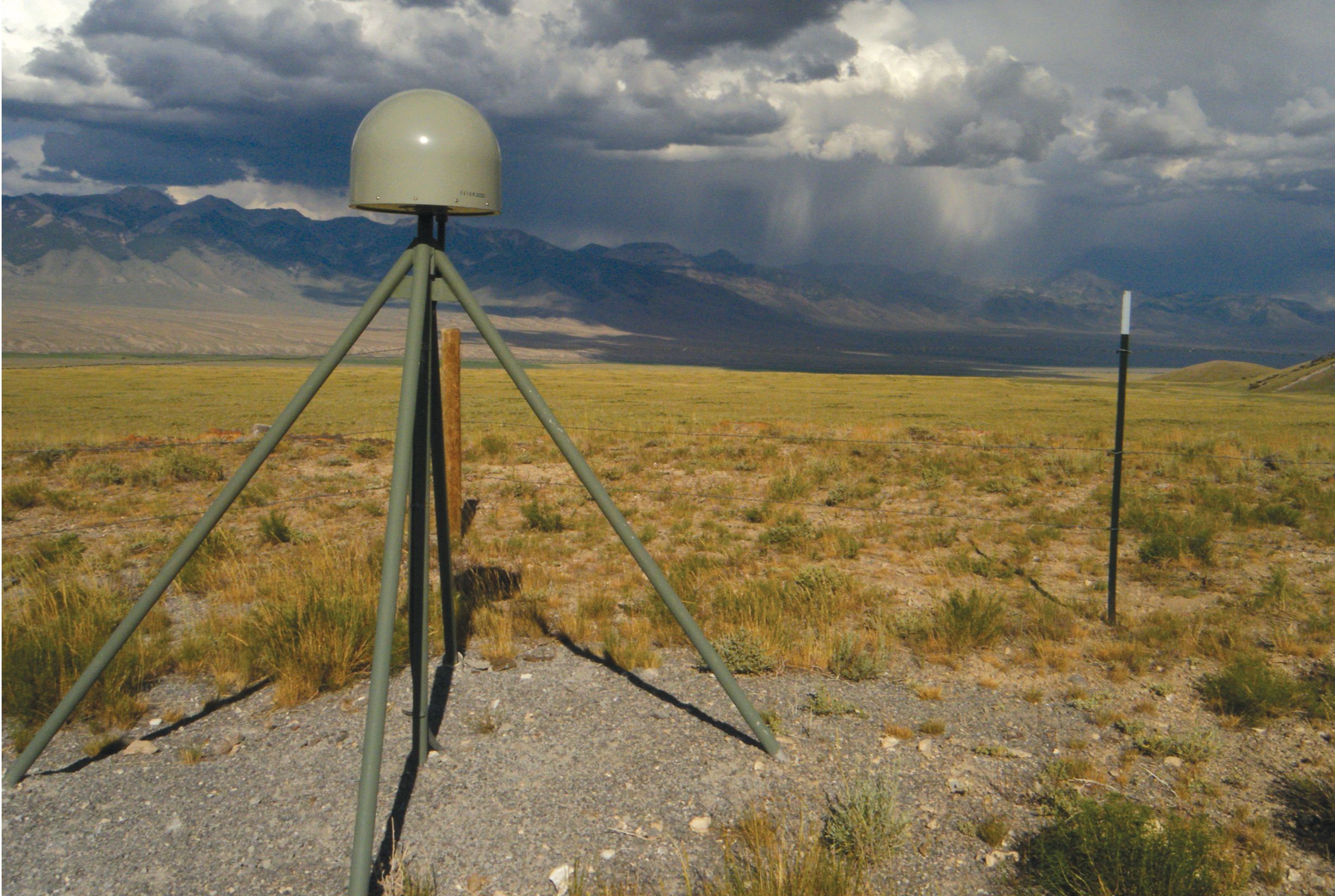 The GPS antenna under this hemispherical dome was designed to monitor the movement of tectonic plates. Ground-reflected GPS signals can be used to infer the soil moisture content near the antenna.