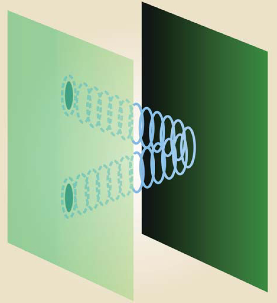 The notion of a perfect fluid arises in many fields of physics. The term can be applied to any system that is in local equilibrium and has negligible shear viscosity η. In everyday life, viscosity is a familiar property associated with the tendency of a substance to resist flow. From a microscopic perspective, it is a diagnostic of the strength of the interactions between a fluid’s constituents. The shear viscosity measures how disturbances in the system are transmitted to the rest of the system through interactions. If those interactions are strong, neighboring parts of the fluid more readily transmit the disturbances through the system (see figure 1). Thus low shear viscosities indicate significant interaction strength. The ideal gas represents the opposite extreme—it is a system with no interactions and infinite shear viscosity.